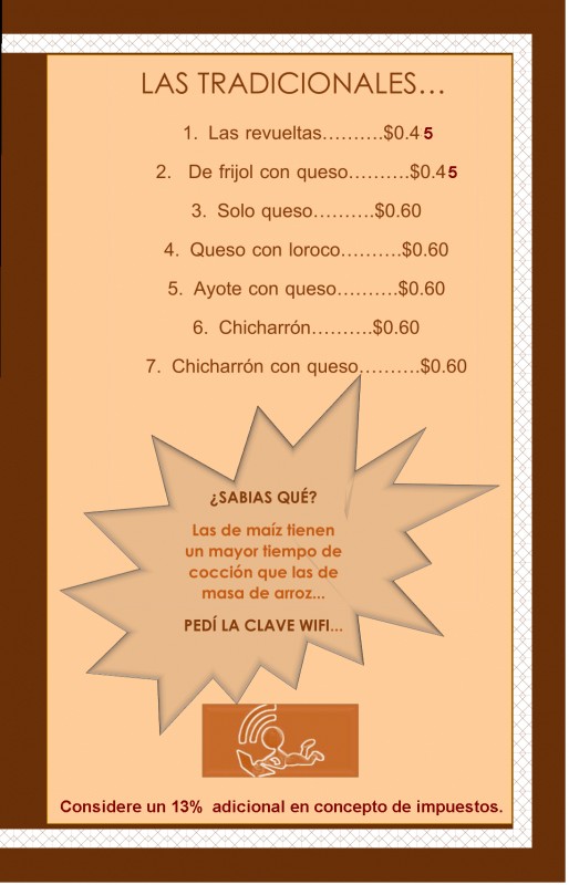 Restaurante especializado en la elaboración y venta de de pupusas artesanales concinadas en comal de barro y leña en el municipio de Ilobasco.