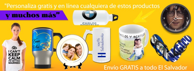 Sitio de diseño y compras de productos impresos con sublimación, láser o pirograbado, con entrega a domicilio gratis en todo El Salvador.