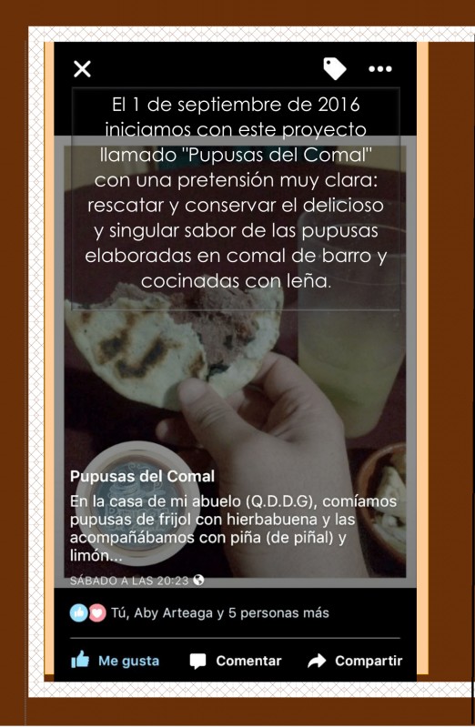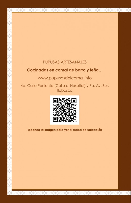 Restaurante especializado en la elaboración y venta de de pupusas artesanales concinadas en comal de barro y leña en el municipio de Ilobasco.