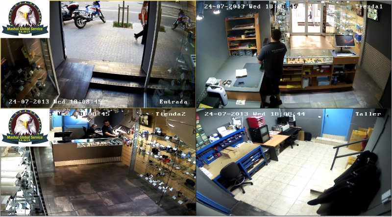 * Instalación y monitoreo desde dispositivos móviles de cámaras de seguridad para interiores y exteriores en hogar y negocio.