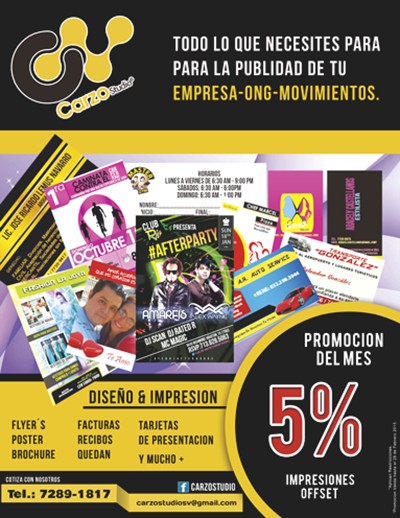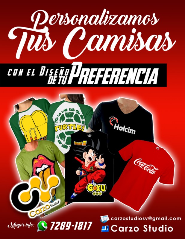 CARZO Studio nace con el fin de prestar los servicios de Diseño Gráfico, Edición de Video y Animación. Tambien contamos con Estampados, Bordados y todo lo relacionado a Publicidad en gerneral.